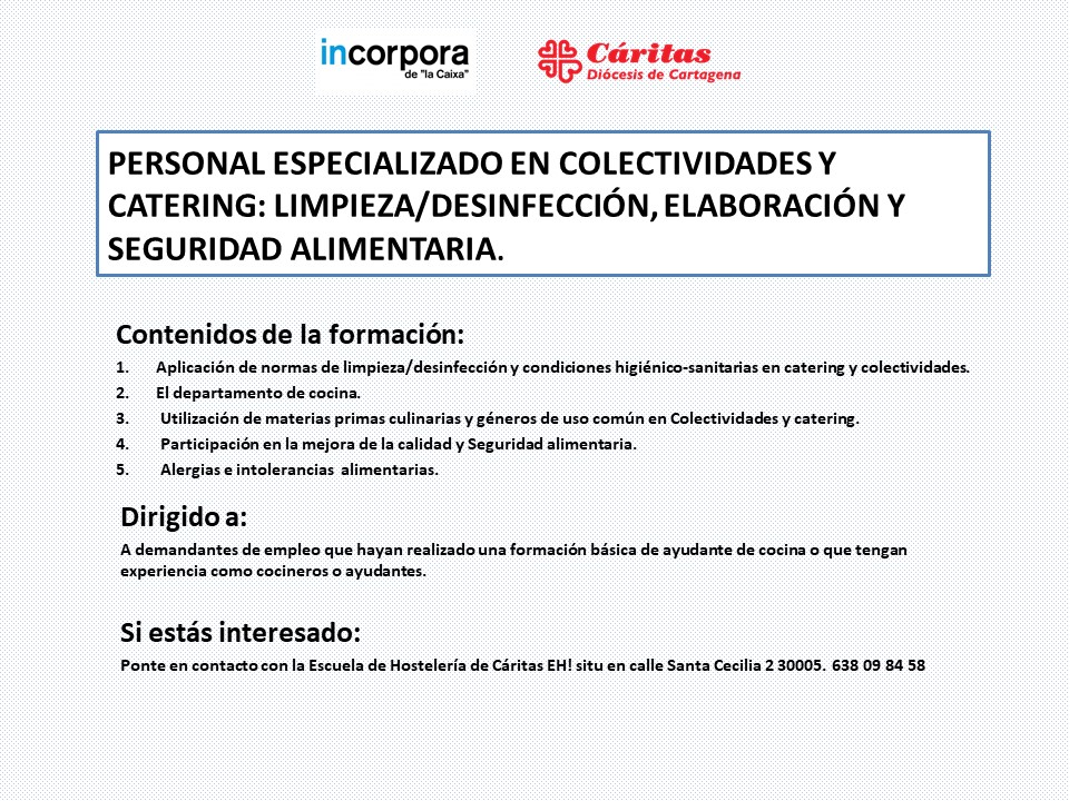 Sin categoría Curso dirigido a personal especializado en colectividades y catering: limpieza/desinfección, elaboración y seguridad alimentaria. 5 octubre, 2020 SIL Región de Murcia Descubre más desde SERVICIO DE INTEGRACIÓN LABORAL Suscríbete y recibe las últimas entradas en tu correo electrónico. Escribe tu correo electrónico… Suscribirse Comparte: Haz clic para compartir en X (Se abre en una ventana nueva) X Haz clic para compartir en Facebook (Se abre en una ventana nueva) Facebook Me gusta Cargando... Relacionado Publicado por SIL Región de Murcia Ver todas las entradas de SIL Región de Murcia Comparte: Haz clic para compartir en X (Se abre en una ventana nueva) X Haz clic para compartir en Facebook (Se abre en una ventana nueva) Facebook Me gusta Cargando...