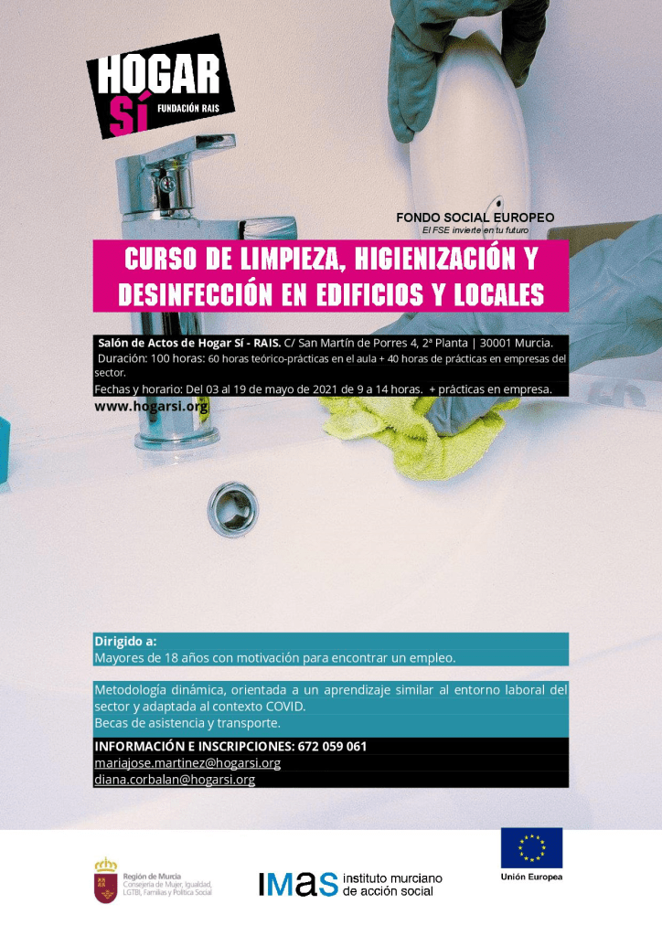 Curso gratuito en Murcia “Limpieza, higienización y desinfección en edificios y locales”.