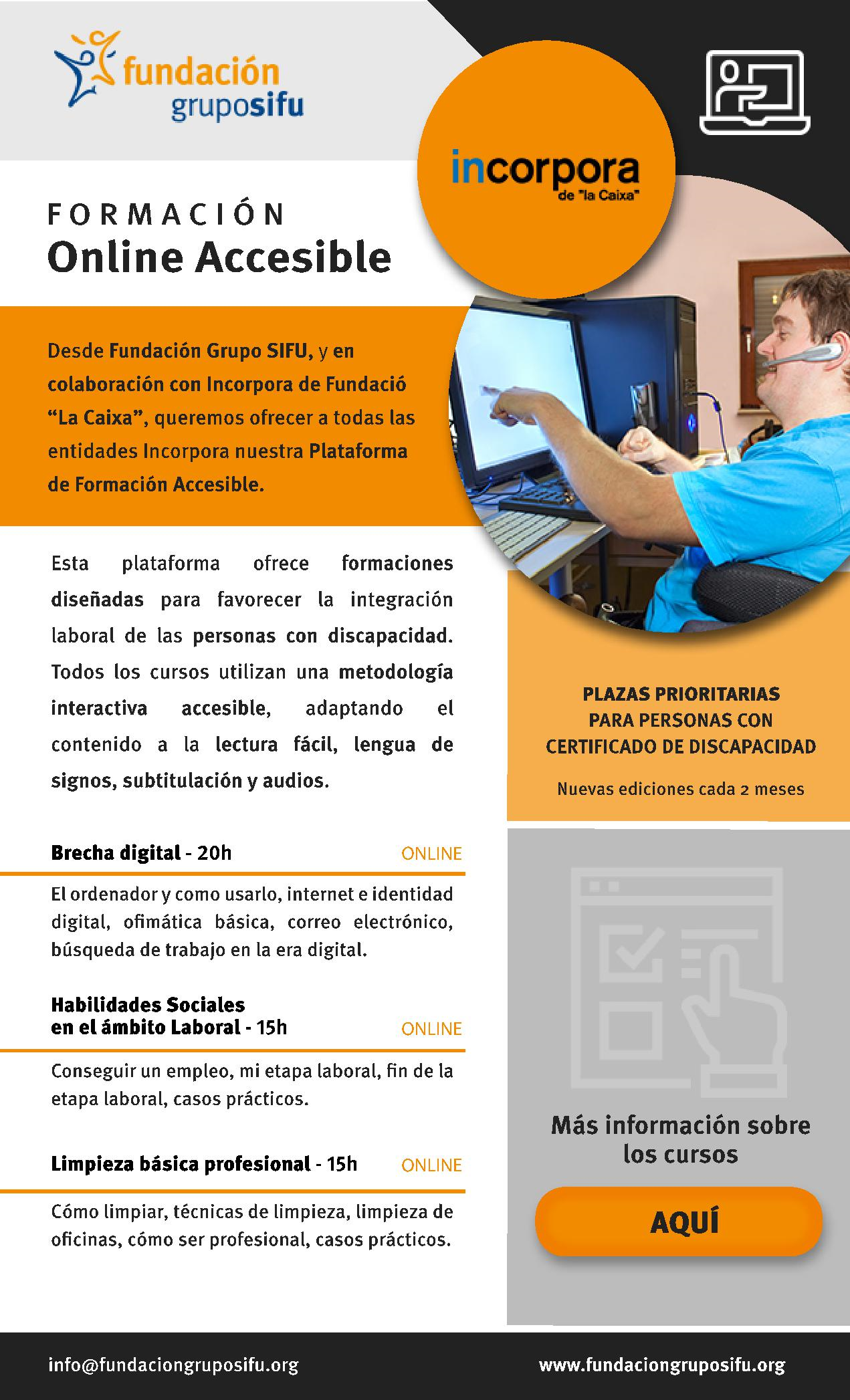 2 respuestas a “Formación On line accesible: Brecha digital (20 horas), Habilidades sociales en el ámbito laboral (15 horas) y Limpieza básica profesional (15 horas).”