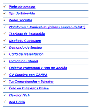 Si estás interesado en alguno de los talleres previstos en mayo (varias ediciones) pincha en el enlace (formulario de contacto SEF), completa el formulario y contactaremos contigo. También te puedes inscribir con tu orientador@ laboral o en la oficina SABER.