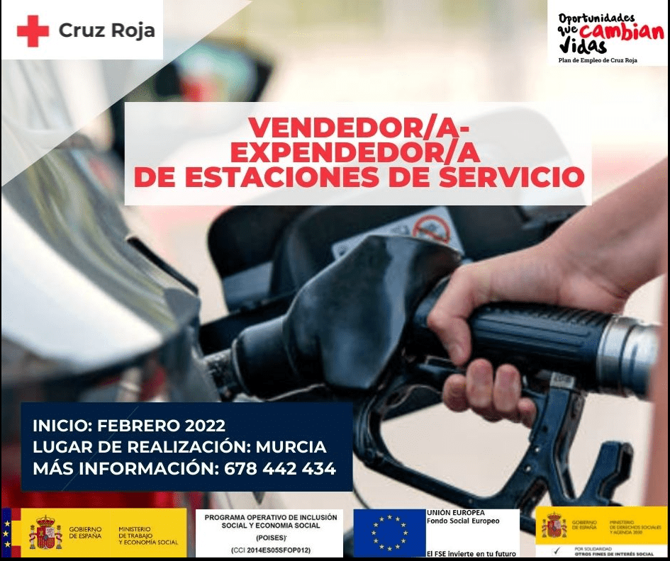 Desde #PlanEmpleoCruzRoja en #Murcia te ofrecemos la posibilidad de realizar el curso de «VENDEDOR -EXPENDEDOR DE ESTACIONES DE SERVICIO» y adquirir los conocimientos necesarios para dar el impulso definitivo a tu carrera profesional