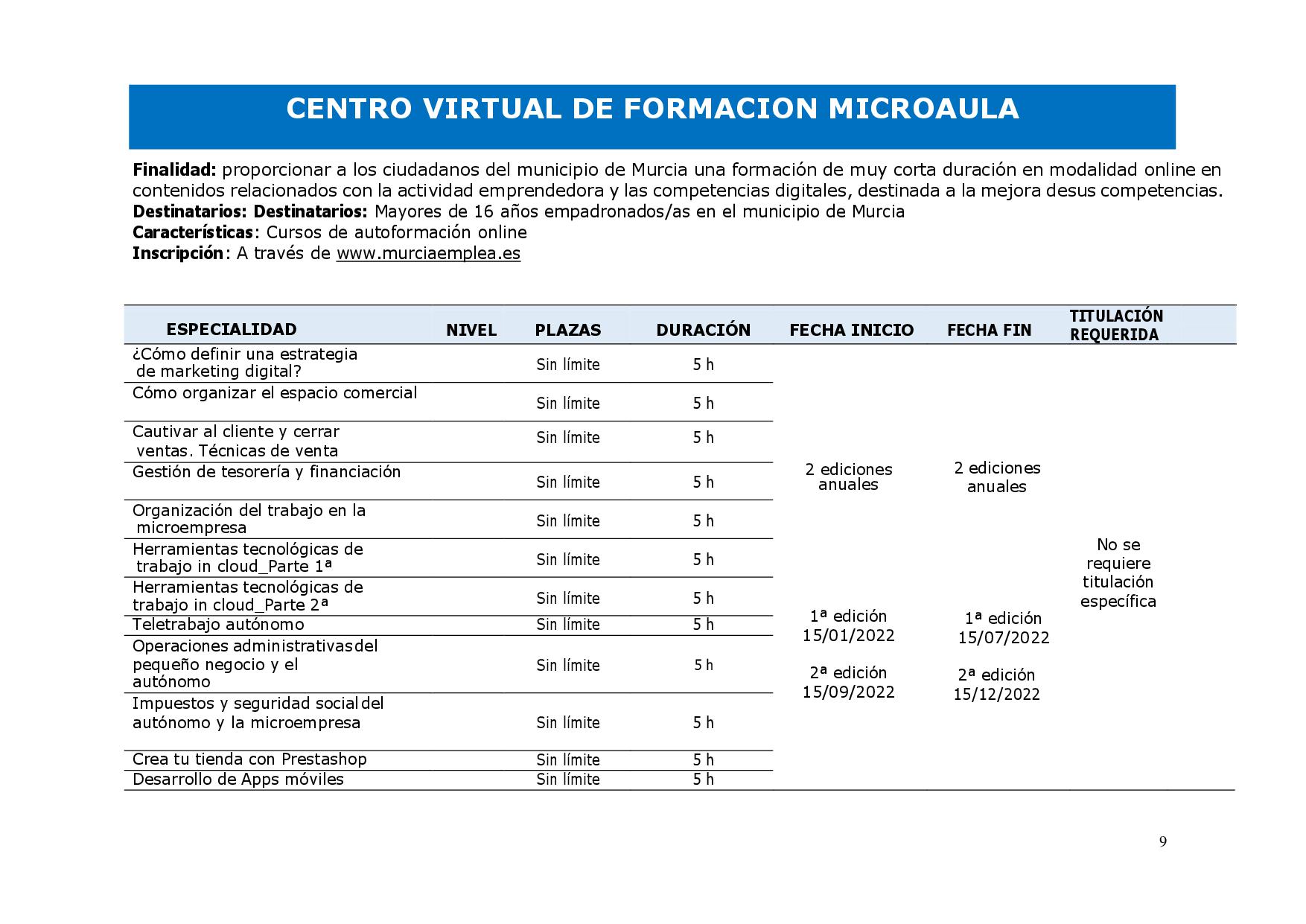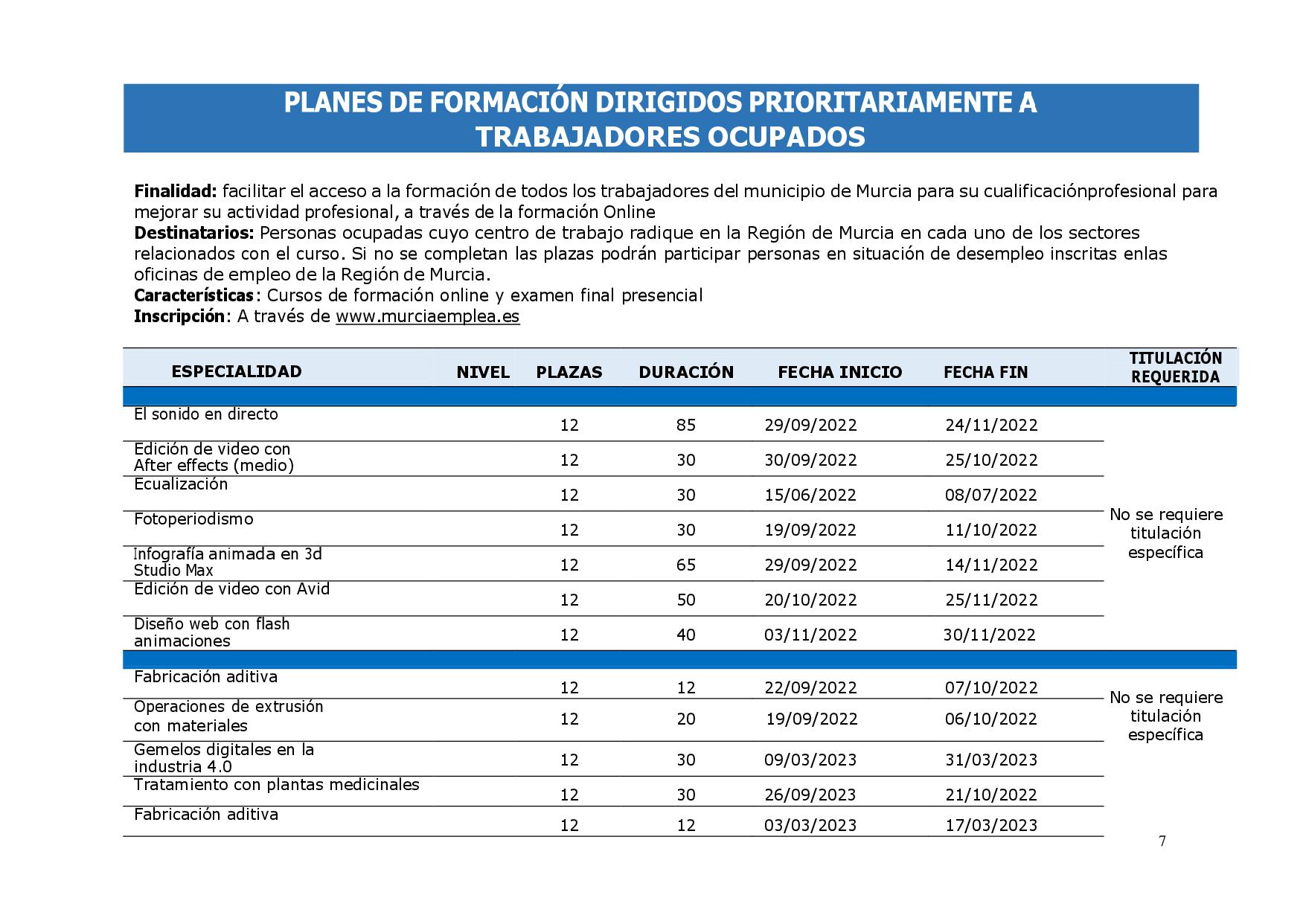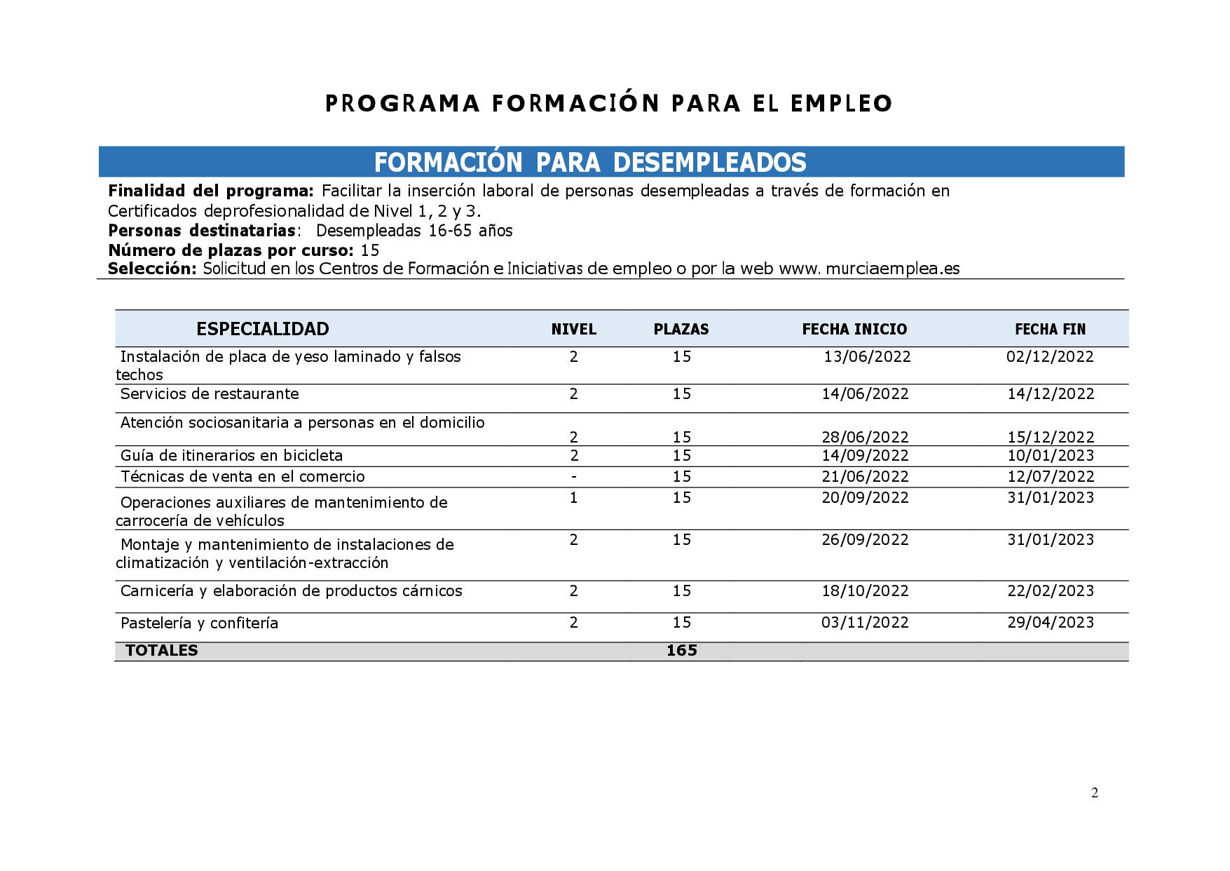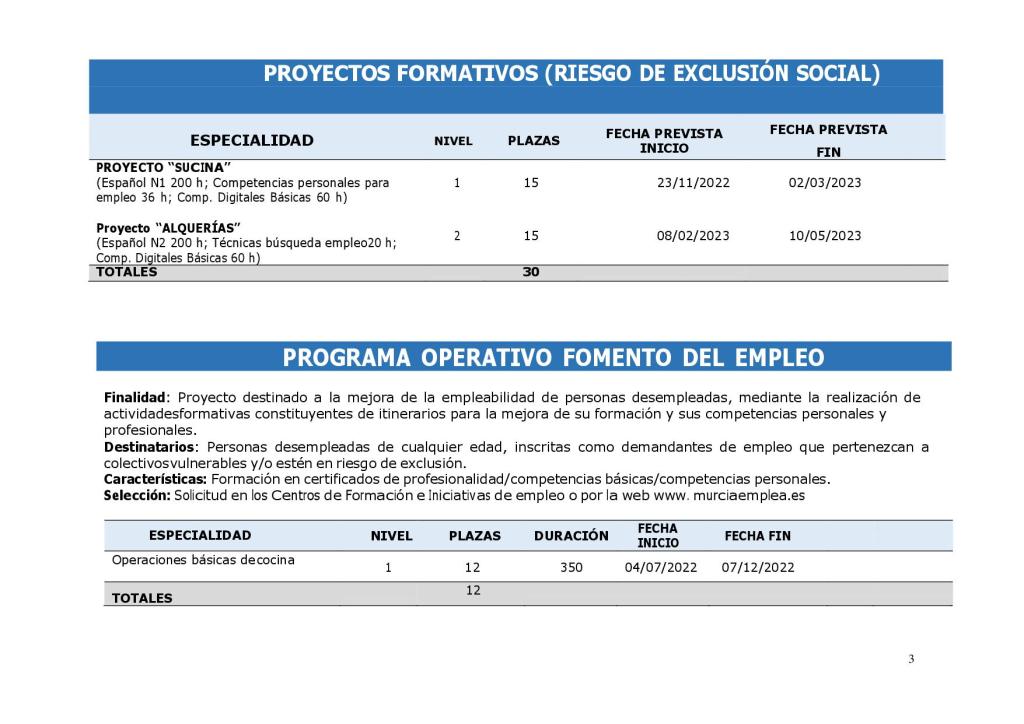 - Formación Profesional para el Empleo. Teléfono 968 358600 – Extensión 35250