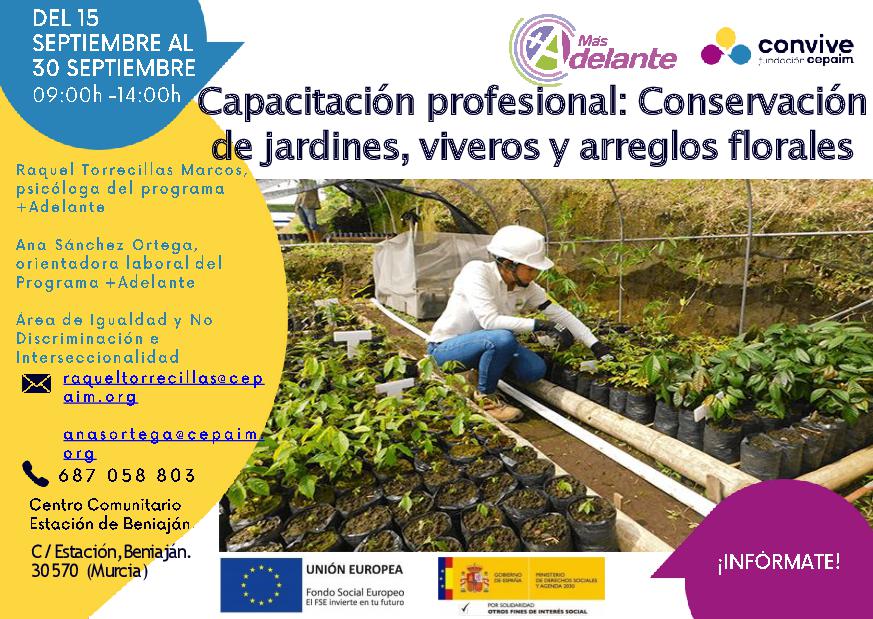 Sin categoría Curso de Capacitación profesional: conservación de jardines, viveros y arreglos florales. 8 septiembre, 2022 SIL Región de Murcia Descubre más desde SERVICIO DE INTEGRACIÓN LABORAL Suscríbete y recibe las últimas entradas en tu correo electrónico. Escribe tu correo electrónico… Suscribirse Comparte: Haz clic para compartir en X (Se abre en una ventana nueva) X Haz clic para compartir en Facebook (Se abre en una ventana nueva) Facebook Me gusta Cargando... Relacionado Publicado por SIL Región de Murcia Ver todas las entradas de SIL Región de Murcia Comparte: Haz clic para compartir en X (Se abre en una ventana nueva) X Haz clic para compartir en Facebook (Se abre en una ventana nueva) Facebook Me gusta Cargando...