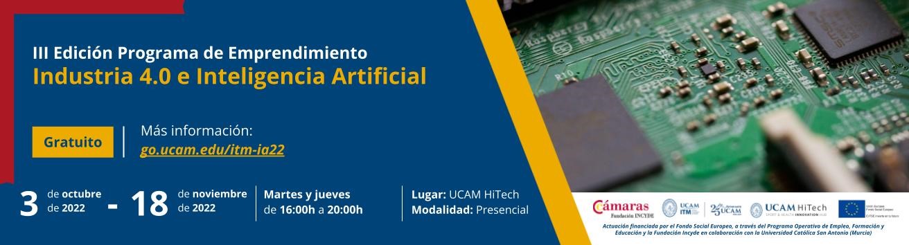 Formación gratuita orientada al sector de las nuevas tecnologías y la digitalización de procesos a través de IA, comienza el 3 de octubre y finaliza el 18 de noviembre. Las clases conjuntas se desarrollarán en formato presencial en UCAM HiTech Sport & Health Innovation Hub, los martes y jueves de 16.00h a 20.00h, que se complementarán con tutorías individuales semanales según la disponibilidad del tutor y el alumno.