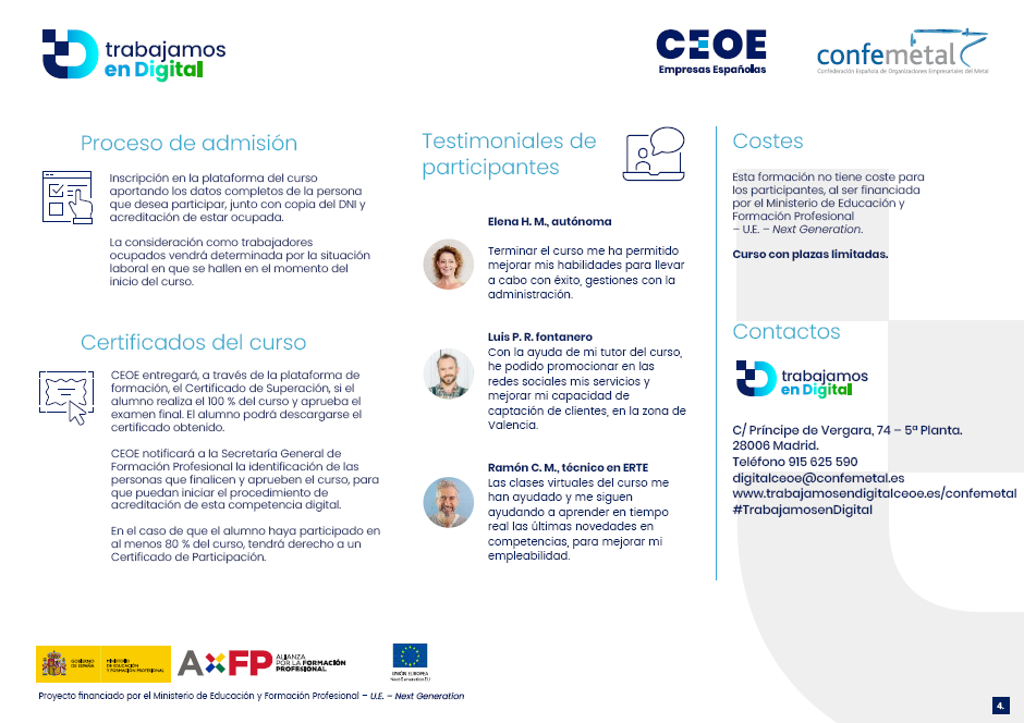 Esta formación es gratuita y está 100% subvencionada por el Ministerio de Educación y Formación Profesional – U.E. – Next Generation.
