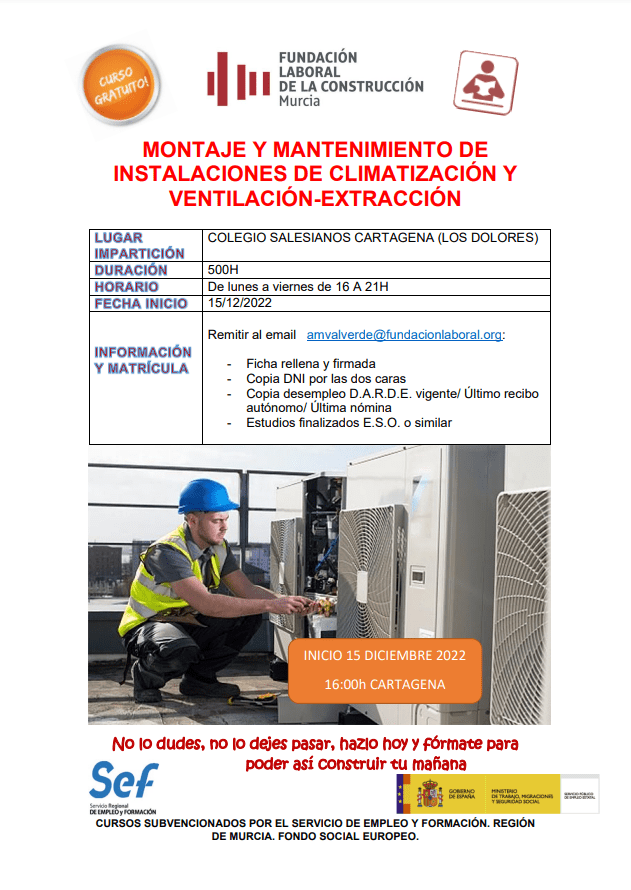 Cursos gratuito de “Montaje y mantenimiento de instalaciones de climatización y ventilación-extracción”