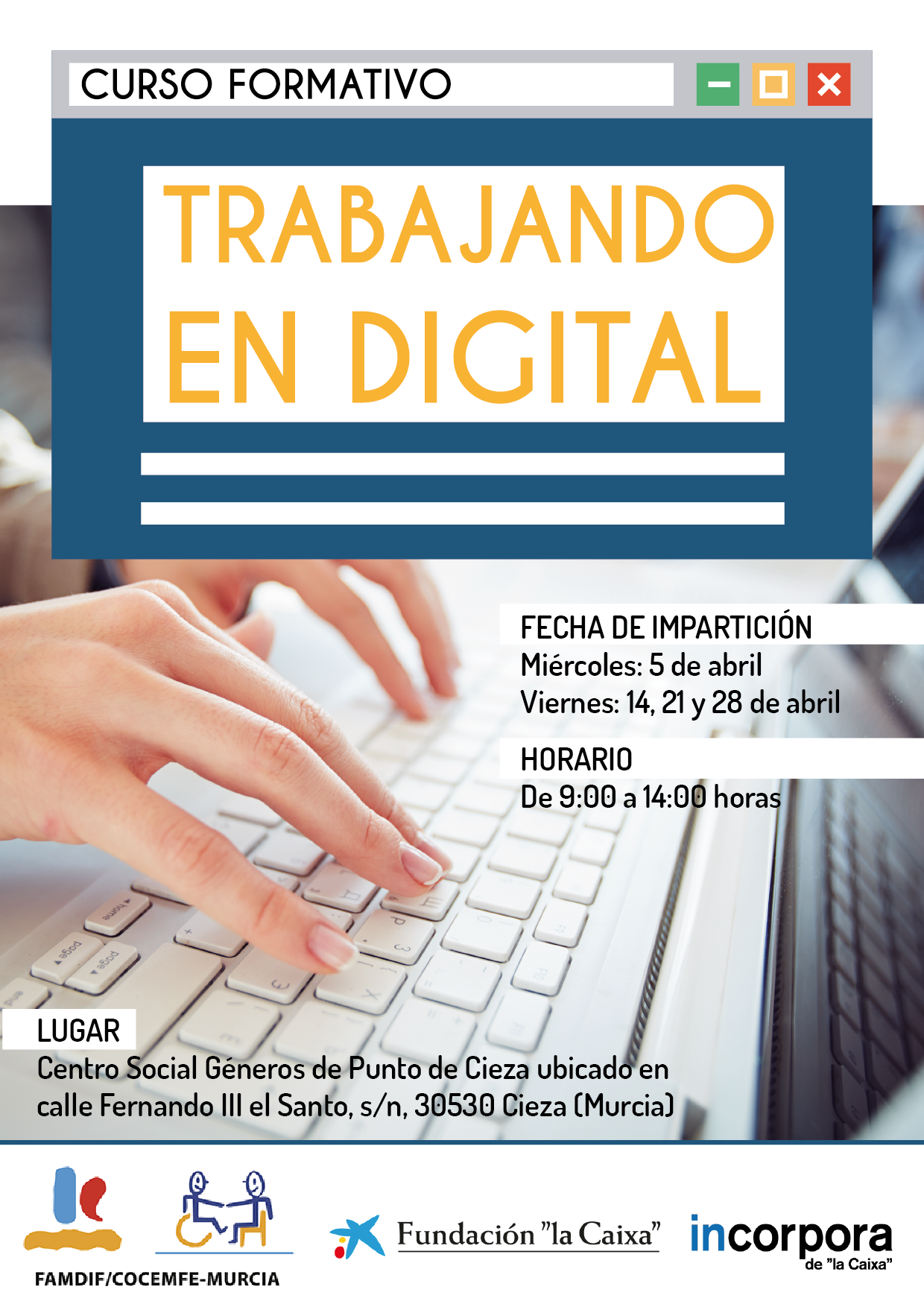 Sin categoría Llega a Cieza el taller “Trabajando en digital” 20 marzo, 202320 marzo, 2023 SIL Región de Murcia ¡Inscríbete aquí! Descubre más desde SERVICIO DE INTEGRACIÓN LABORAL Suscríbete y recibe las últimas entradas en tu correo electrónico. Escribe tu correo electrónico… Suscribirse Comparte: Haz clic para compartir en X (Se abre en una ventana nueva) X Haz clic para compartir en Facebook (Se abre en una ventana nueva) Facebook Me gusta Cargando... Relacionado Publicado por SIL Región de Murcia Ver todas las entradas de SIL Región de Murcia Comparte: Haz clic para compartir en X (Se abre en una ventana nueva) X Haz clic para compartir en Facebook (Se abre en una ventana nueva) Facebook Me gusta Cargando...