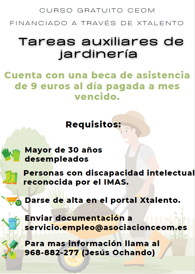 Sin categoría Curso «Tareas auxiliares de jardinería» para personas con discapacidad intelectual 15 mayo, 2023 SIL Región de Murcia Descubre más desde SERVICIO DE INTEGRACIÓN LABORAL Suscríbete y recibe las últimas entradas en tu correo electrónico. Escribe tu correo electrónico… Suscribirse Comparte: Haz clic para compartir en X (Se abre en una ventana nueva) X Haz clic para compartir en Facebook (Se abre en una ventana nueva) Facebook Me gusta Cargando... Relacionado Publicado por SIL Región de Murcia Ver todas las entradas de SIL Región de Murcia Comparte: Haz clic para compartir en X (Se abre en una ventana nueva) X Haz clic para compartir en Facebook (Se abre en una ventana nueva) Facebook Me gusta Cargando...