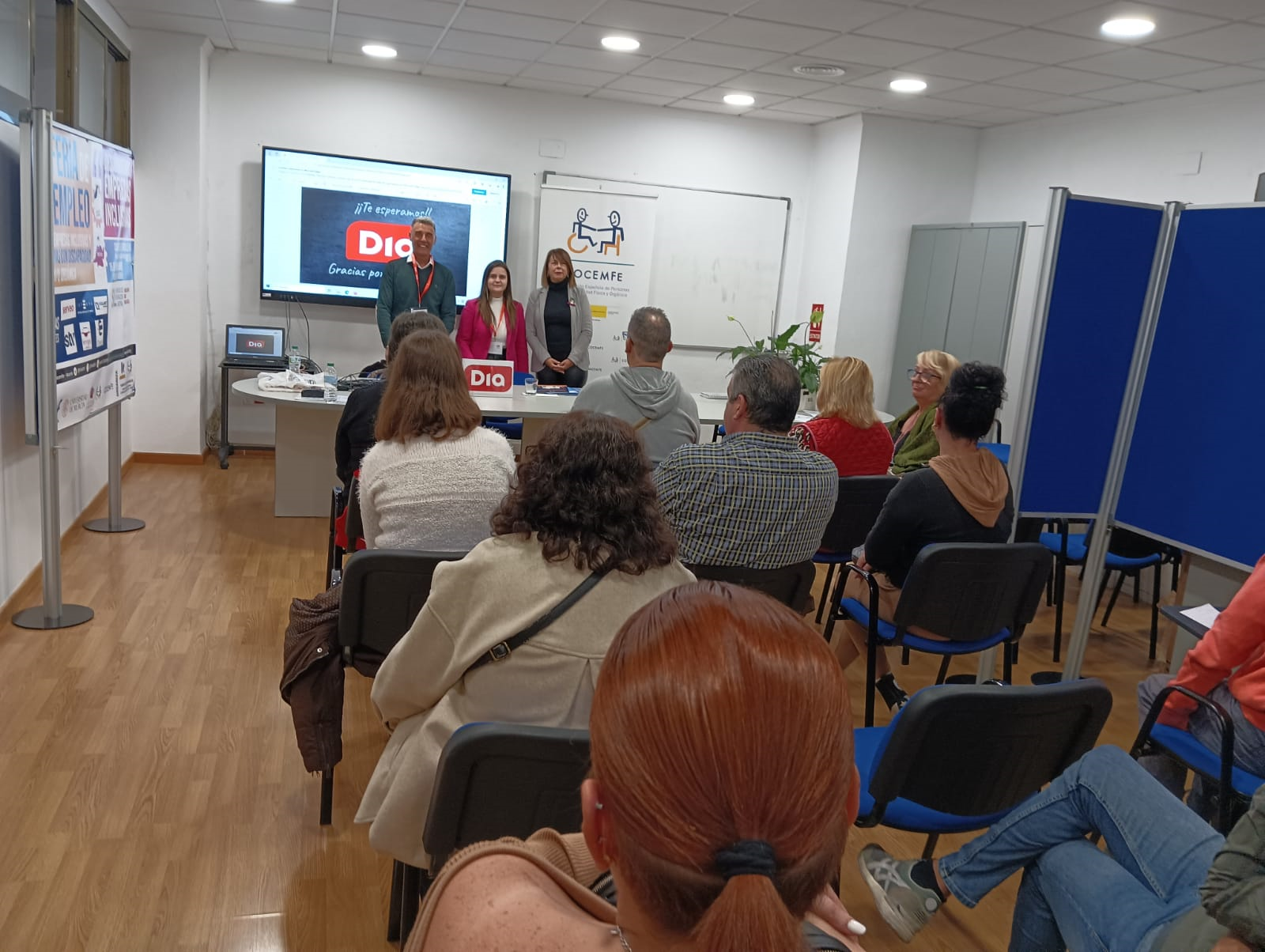 El Servicio de Integración Laboral de FAMDIF/COCEMFE-Murcia, recibió la visita del Departamento de RRHH de Supermercados Día en la Región de Murcia con motivo de la impartición de una charla acerca de su empresa, los procesos de selección y reclutamiento de personal que llevan a cabo y sobre su sistema de actuación en el área de gestión de residuos y reciclaje.