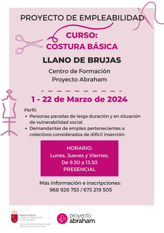 Bienvenida a la acción formativa “Costura básica” con una duración de 40 horas en