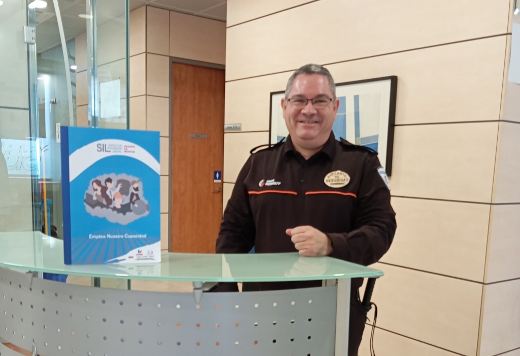 En la actualidad trabaja como vigilante de seguridad para GESTIÓN DE SEGURIDAD Y CONTROL S.L. y presta servicio en Ibermutuamur donde se ha integrado de manera asombrosa con sus compañeros, sintiéndose parte fundamental del equipo y disfrutando de su trabajo cerca de casa. Como vigilante de seguridad, su contacto con los clientes de IBERMUTUAMUR es crucial, brindando ayuda y amabilidad desde el primer momento.
