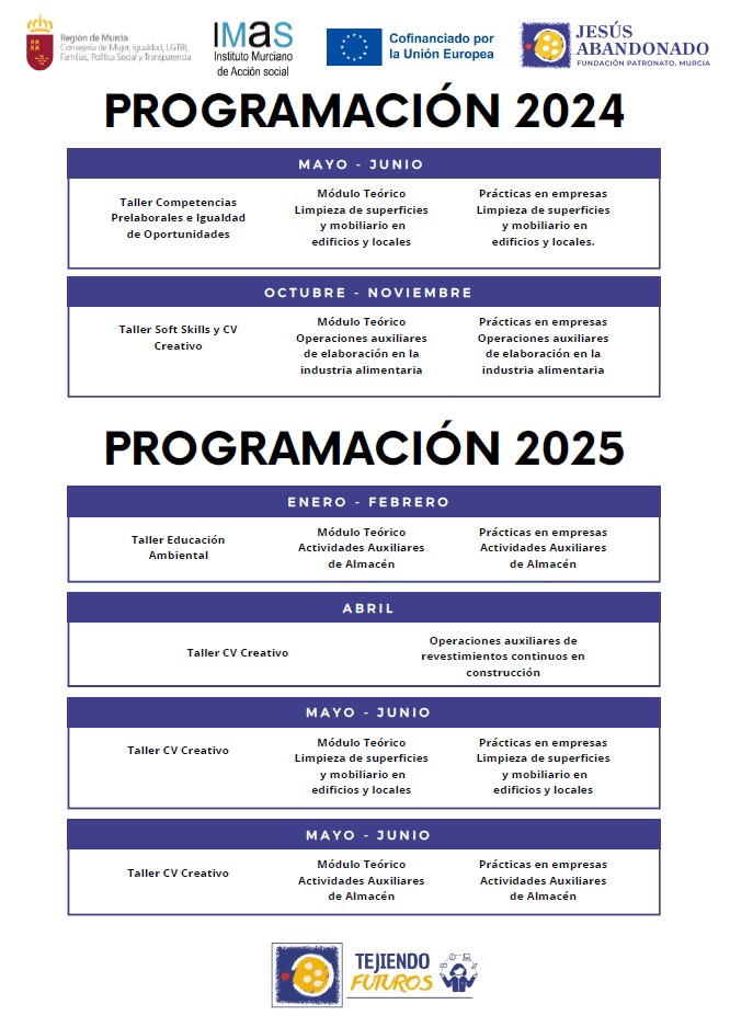 Sin categoría Programación 2024-2025 del proyecto «Tejiendo futuros» 5 abril, 2024 SIL Región de Murcia Descubre más desde SERVICIO DE INTEGRACIÓN LABORAL Suscríbete y recibe las últimas entradas en tu correo electrónico. Escribe tu correo electrónico… Suscribirse Comparte: Haz clic para compartir en X (Se abre en una ventana nueva) X Haz clic para compartir en Facebook (Se abre en una ventana nueva) Facebook Me gusta Cargando... Relacionado Publicado por SIL Región de Murcia Ver todas las entradas de SIL Región de Murcia Comparte: Haz clic para compartir en X (Se abre en una ventana nueva) X Haz clic para compartir en Facebook (Se abre en una ventana nueva) Facebook Me gusta Cargando...