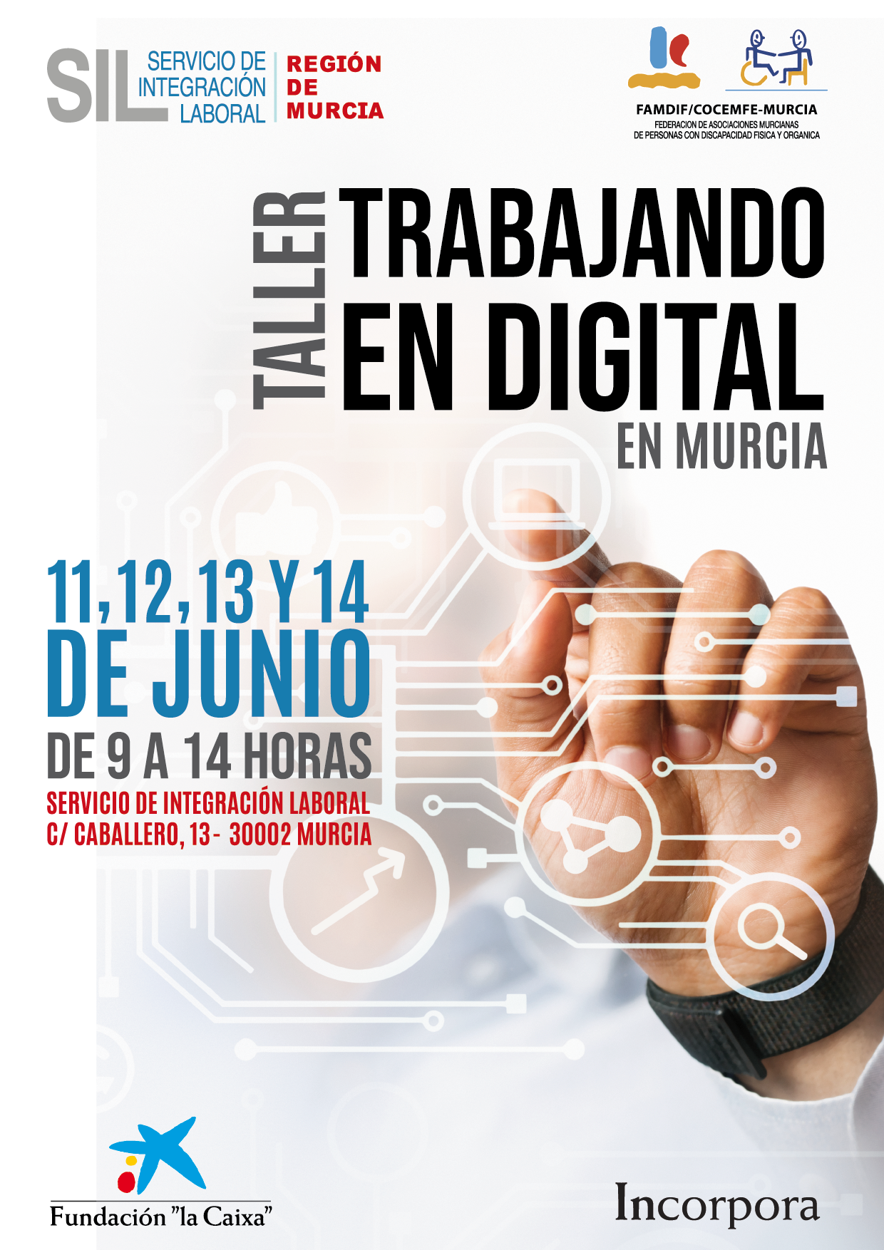 Sin categoría Taller “Trabajando en digital” en Murcia 17 mayo, 202420 mayo, 2024 SIL Región de Murcia INSCRIPCIONES AQUÍ Descubre más desde SERVICIO DE INTEGRACIÓN LABORAL Suscríbete y recibe las últimas entradas en tu correo electrónico. Escribe tu correo electrónico… Suscribirse Comparte: Haz clic para compartir en X (Se abre en una ventana nueva) X Haz clic para compartir en Facebook (Se abre en una ventana nueva) Facebook Me gusta Cargando... Relacionado Publicado por SIL Región de Murcia Ver todas las entradas de SIL Región de Murcia Comparte: Haz clic para compartir en X (Se abre en una ventana nueva) X Haz clic para compartir en Facebook (Se abre en una ventana nueva) Facebook Me gusta Cargando...