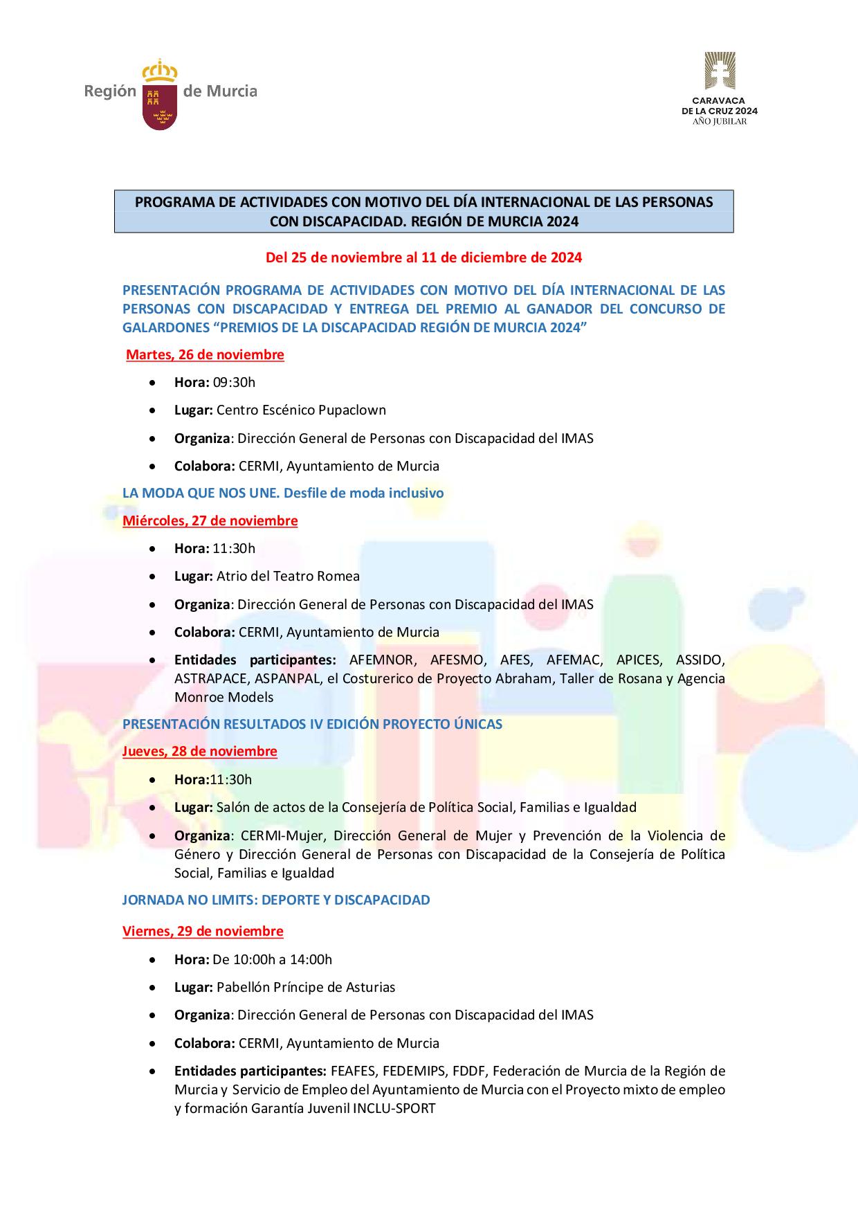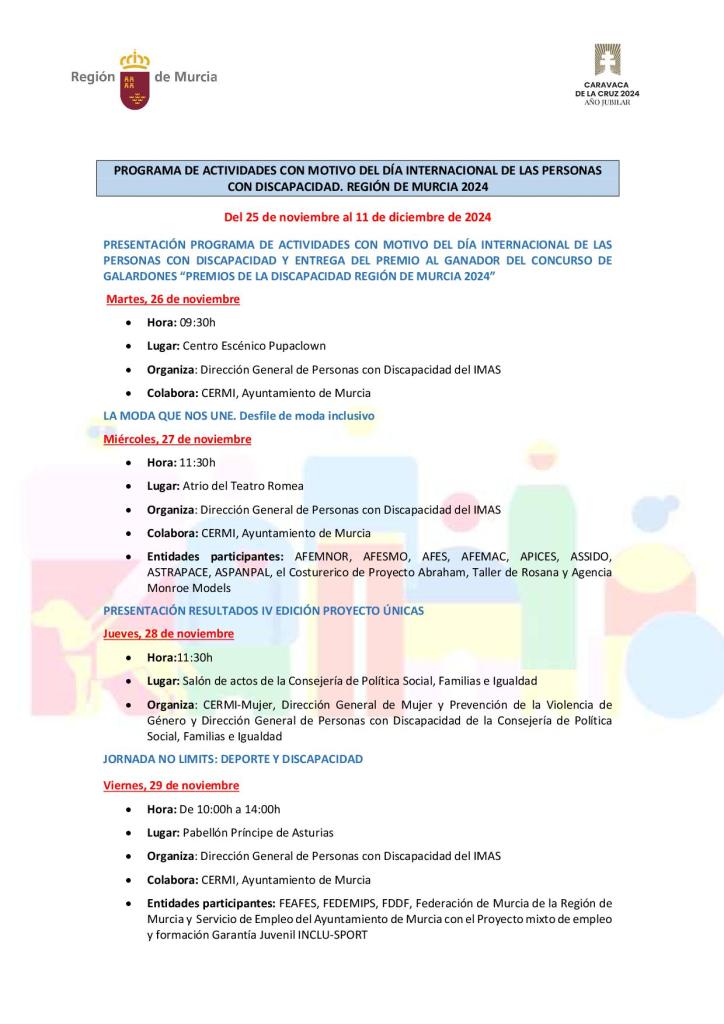 Sin categoría Programa de actividades con motivo del Día Internacional de las Personas con Discapacidad 25 noviembre, 2024 SIL Región de Murcia Descubre más desde SERVICIO DE INTEGRACIÓN LABORAL Suscríbete y recibe las últimas entradas en tu correo electrónico. Escribe tu correo electrónico… Suscribirse Comparte: Haz clic para compartir en X (Se abre en una ventana nueva) X Haz clic para compartir en Facebook (Se abre en una ventana nueva) Facebook Me gusta Cargando... Relacionado Publicado por SIL Región de Murcia Ver todas las entradas de SIL Región de Murcia Comparte: Haz clic para compartir en X (Se abre en una ventana nueva) X Haz clic para compartir en Facebook (Se abre en una ventana nueva) Facebook Me gusta Cargando...