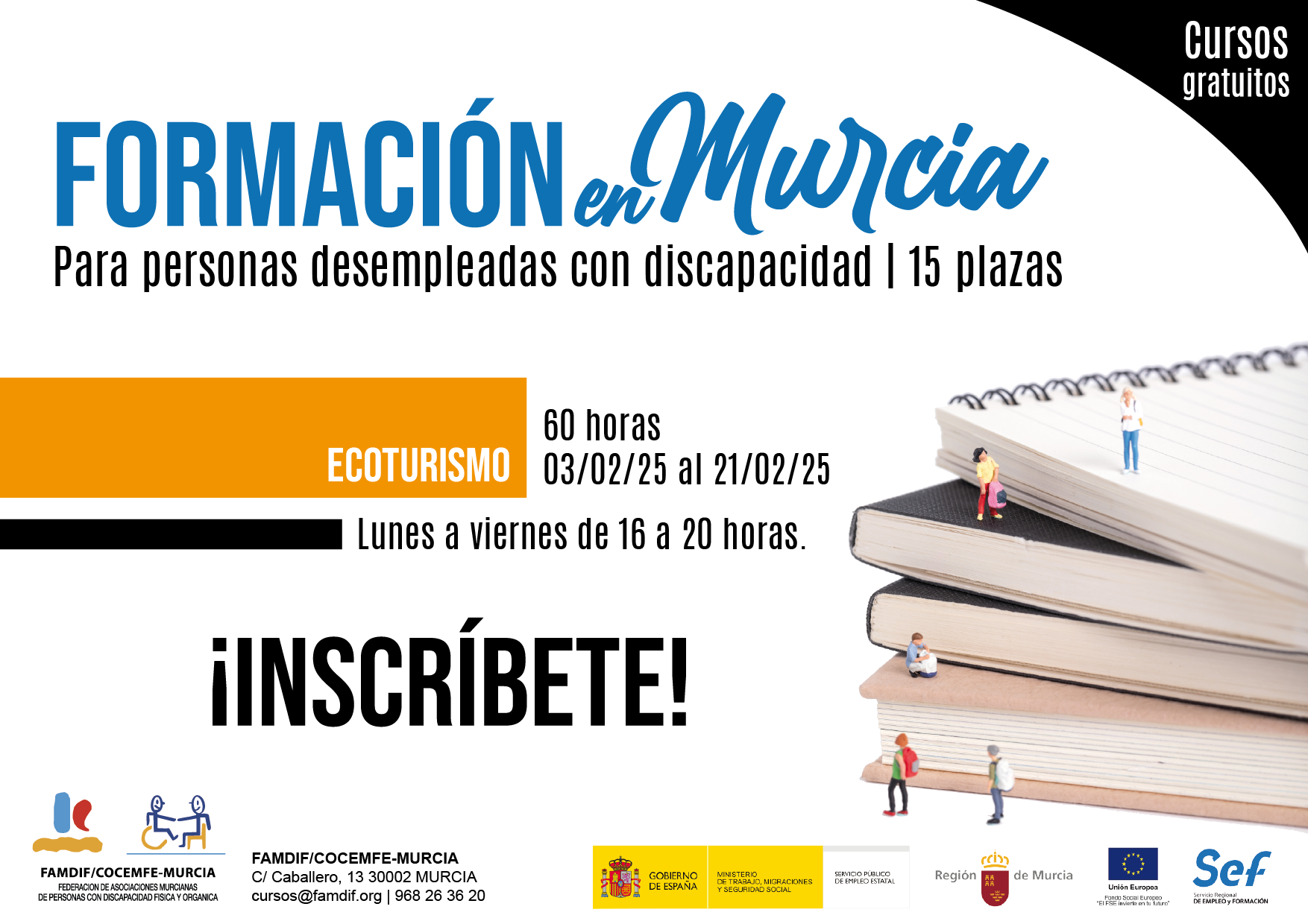 1. Buenos días , es una pena que no pueda desplazarme por motivos económicos y de salud, a menos que el transporte sea gratuito. Gracias, y decir que porqué en Mazarrón no hay cursos así para discapacitados. Cuál es el motivo?