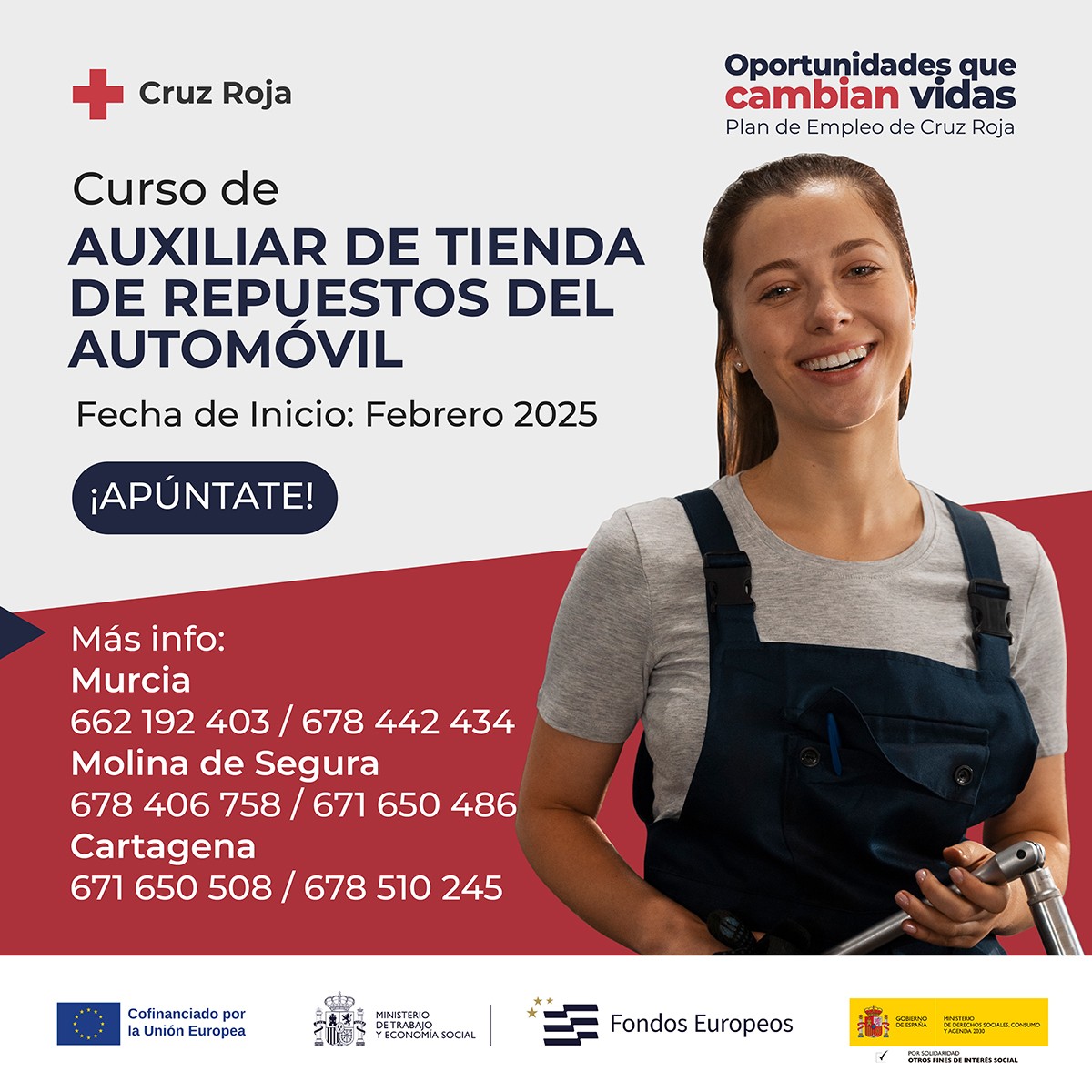 En colaboración con Cruz Roja y Feu Vert, te invitamos a participar en nuestra sesión de preselección para el curso de Auxiliar de Tienda de Repuestos del Automóvil.