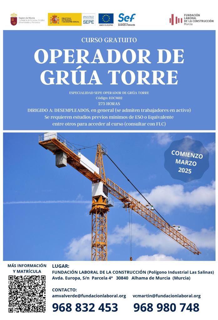 Sin categoría Curso gratuito de Operador de Grúa Torre 10 marzo, 2025 SIL Región de Murcia Descubre más desde SERVICIO DE INTEGRACIÓN LABORAL Suscríbete y recibe las últimas entradas en tu correo electrónico. Escribe tu correo electrónico… Suscribirse Comparte: Haz clic para compartir en X (Se abre en una ventana nueva) X Haz clic para compartir en Facebook (Se abre en una ventana nueva) Facebook Me gusta Cargando... Relacionado Publicado por SIL Región de Murcia Ver todas las entradas de SIL Región de Murcia Comparte: Haz clic para compartir en X (Se abre en una ventana nueva) X Haz clic para compartir en Facebook (Se abre en una ventana nueva) Facebook Me gusta Cargando...