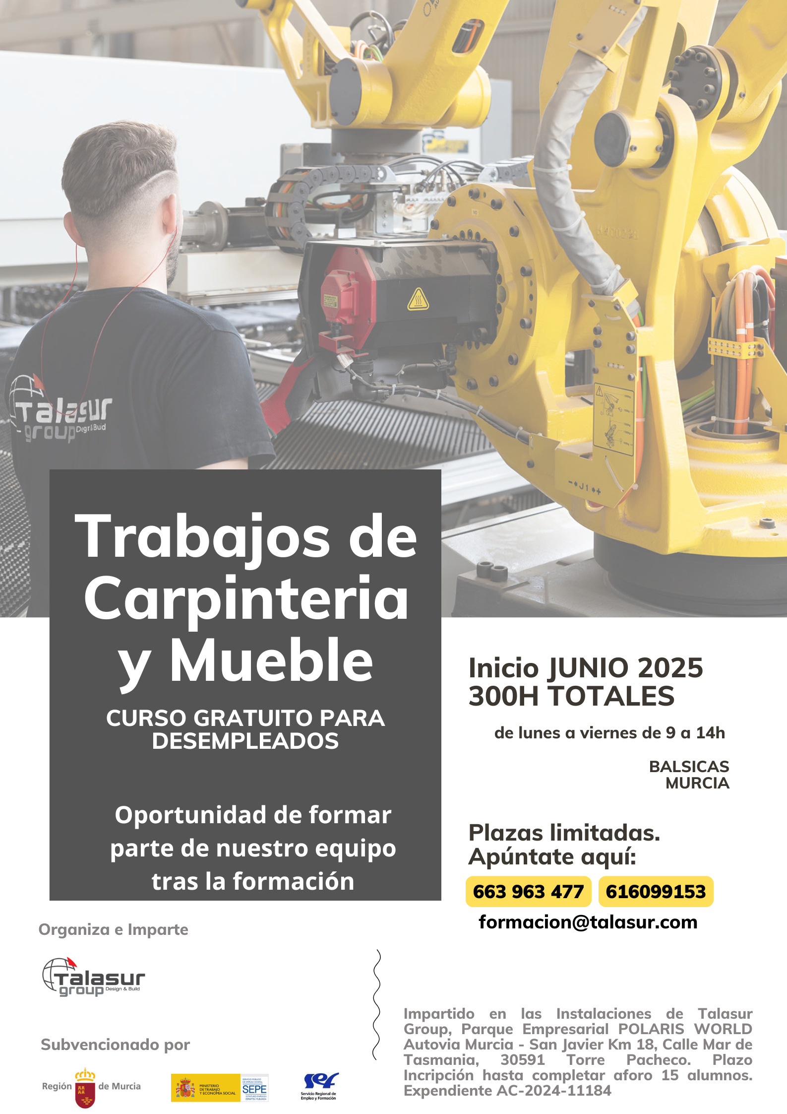 Sin categoría La empresa Talasur Group ofrece este curso gratuito: Trabajos de carpintería y mueble 2 junio, 20252 junio, 2025 SIL Región de Murcia Descubre más desde SERVICIO DE INTEGRACIÓN LABORAL Suscríbete y recibe las últimas entradas en tu correo electrónico. Escribe tu correo electrónico… Suscribirse Comparte: Haz clic para compartir en X (Se abre en una ventana nueva) X Haz clic para compartir en Facebook (Se abre en una ventana nueva) Facebook Me gusta Cargando... Relacionado Publicado por SIL Región de Murcia Ver todas las entradas de SIL Región de Murcia Comparte: Haz clic para compartir en X (Se abre en una ventana nueva) X Haz clic para compartir en Facebook (Se abre en una ventana nueva) Facebook Me gusta Cargando...