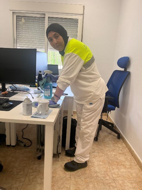 En 2024 llegó la oportunidad que tanto había buscado: un puesto como operaria de limpieza en Grupo G&S España, con una media jornada. Para Samira, fue mucho más que un contrato: fue el primer paso hacia la estabilidad. Desde el primer día, demostró un compromiso ejemplar. Aunque no tenía coche y debía combinar autobús y trayectos a pie, nunca llegó tarde a su puesto. Siempre puntual, siempre con buena actitud, siempre dispuesta a dar lo mejor de sí.