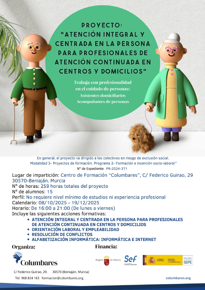 La formación va dirigida a personas que no tienen formación en el cuidado de personas y que deseen trabajar en este sector.