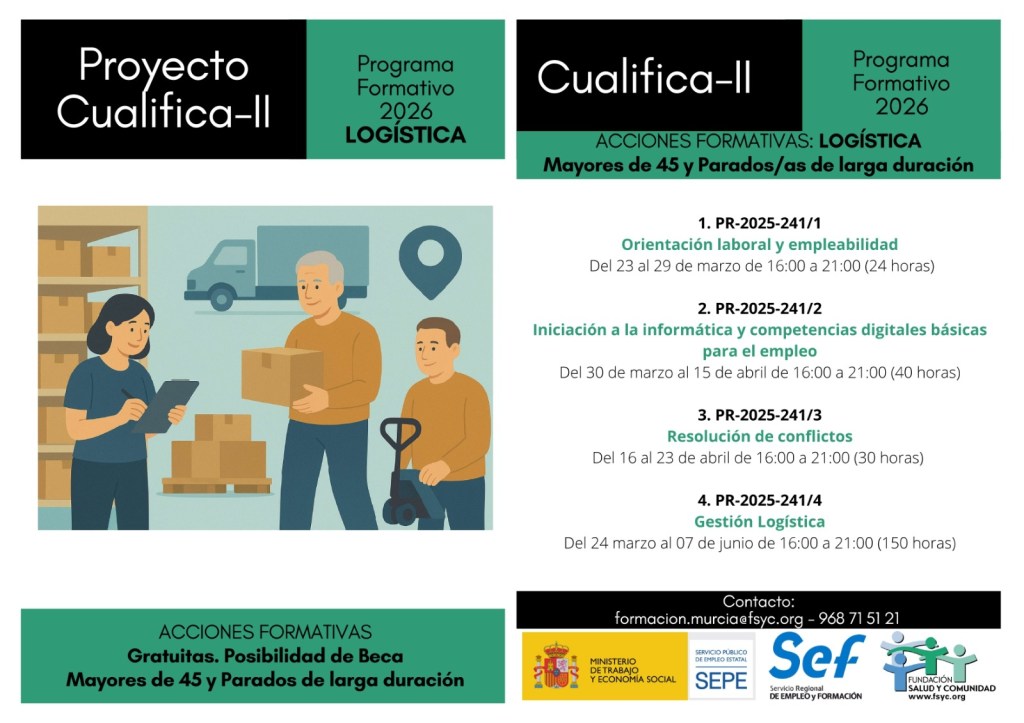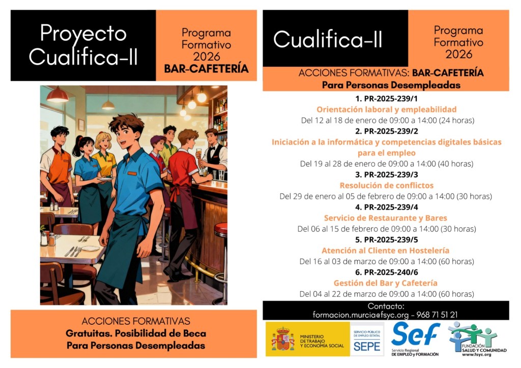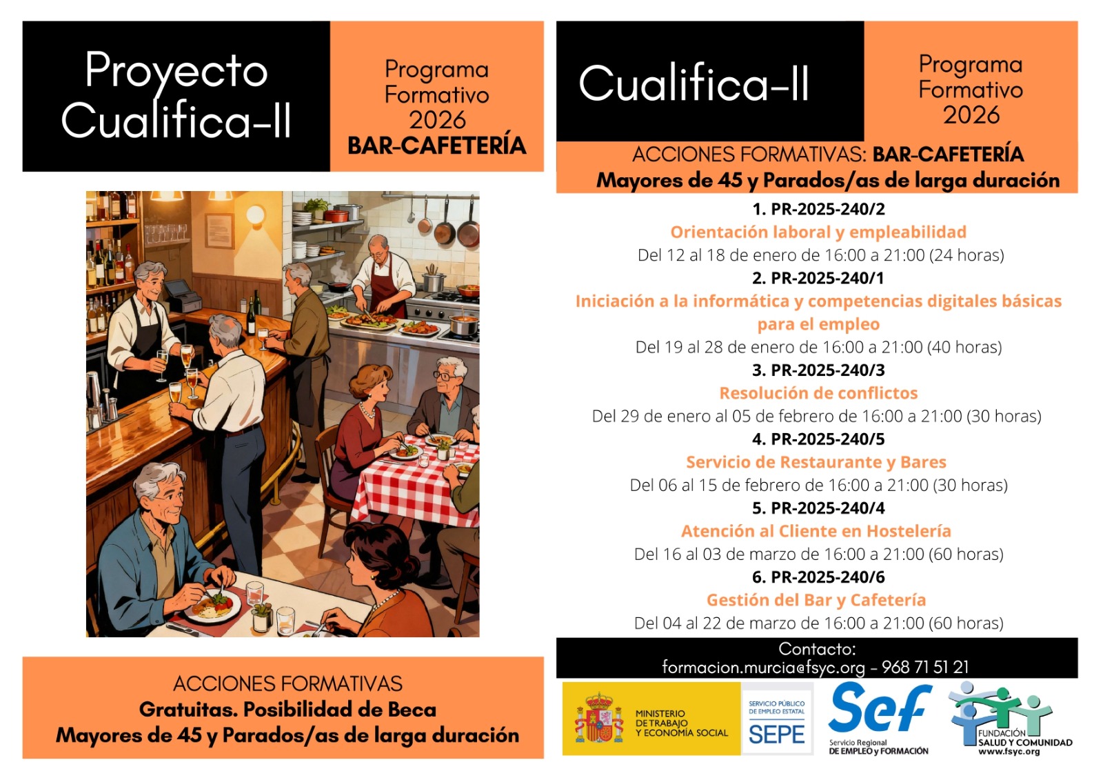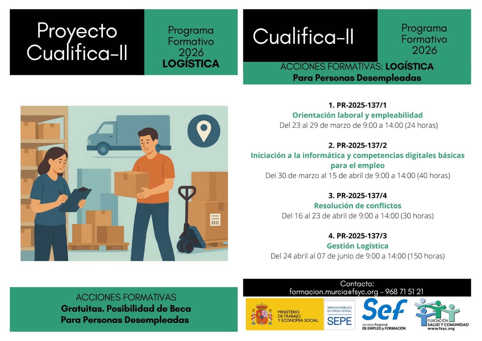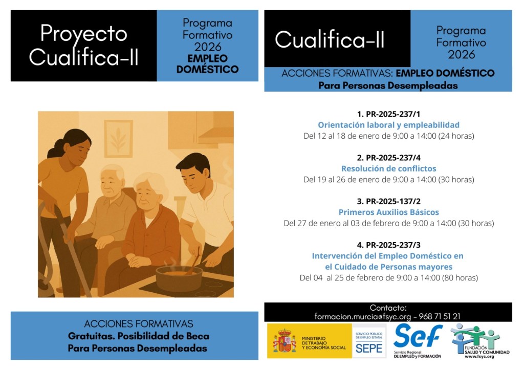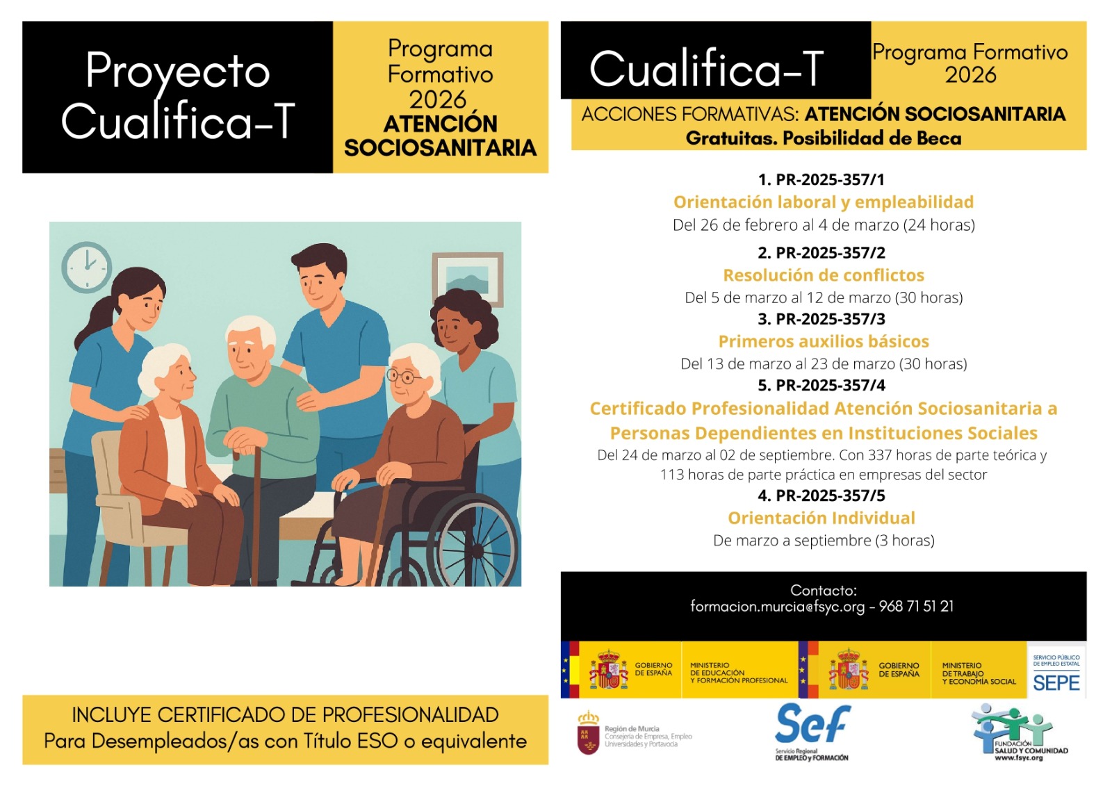 Desde Fundación Salud y Comunidad, ofertan las siguientes acciones formativas Cualifica-T/Cualifica-II en el año 2026 y dirigidas a personas desempleadas. Son formaciones completas en sectores con alta demanda de empleo, totalmente gratuitas y con posibilidad de Beca: