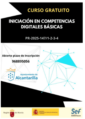 En el siguiente enlace encontrará toda la información del curso: https://www.alcantarilla.es/areas/cursos-y-acciones-formativas/curso-iniciacion-en-competencias-digitales-basicas-2/