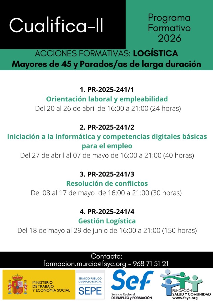 Sin categoría Cursos de Bar Cafetería y Gestión de Logística, ofertados por Fundación Salud y Comunidad 19 enero, 2026 SIL Región de Murcia Descubre más desde SERVICIO DE INTEGRACIÓN LABORAL Suscríbete y recibe las últimas entradas en tu correo electrónico. Escribe tu correo electrónico… Suscribirse Comparte: Compartir en X (Se abre en una ventana nueva) X Compartir en Facebook (Se abre en una ventana nueva) Facebook Me gusta Cargando... Relacionado Publicado por SIL Región de Murcia Ver todas las entradas de SIL Región de Murcia Comparte: Compartir en X (Se abre en una ventana nueva) X Compartir en Facebook (Se abre en una ventana nueva) Facebook Me gusta Cargando...