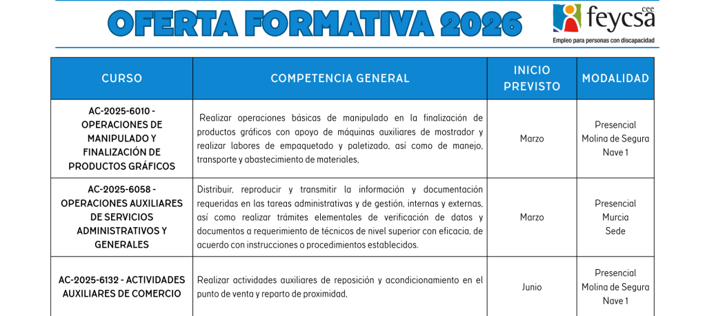 Si estás interesado/a en alguno de los cursos contacta con Feycsa a través de los siguientes datos de contacto: