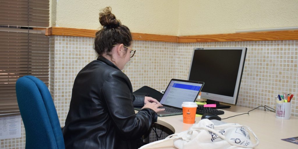 Luana Esperon, la diseñadora gráfica y voluntaria europea de FAMDIF durante el año 2022-2023. La joven de origen belga y raíces gallegas, decidió volver a España a través del Cuerpo Europeo de Solidaridad (CES), promovido por Euroacción.