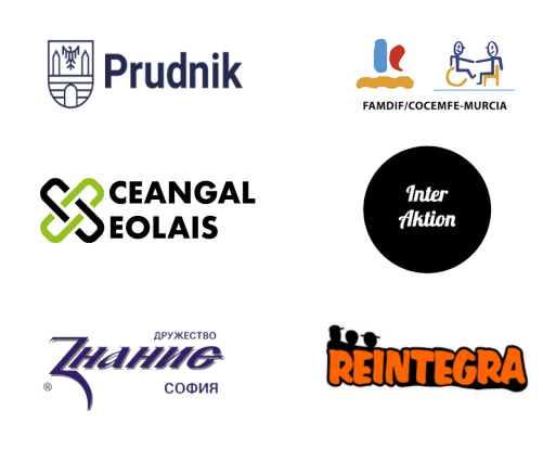 Seis socios componen Charites: Gmina Prudnik (Polonia) como coordinador, Ceangal Eolais (Irlanda), REINTEGRA (Chequia), Znanie (Bulgaria), FAMDIF (España) e InterAktion (Austria)